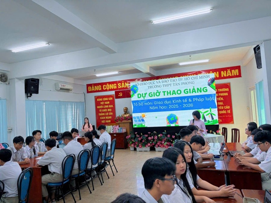Tổ Giáo dục Kinh tế và Pháp luật và Tổ Địa lý trường THPT Tân Phong đã thực hiện một tiết học liên môn với thông điệp truyền tải: Luật không còn "khô" và Công nghệ là "cánh tay xanh". Từ nhận thức đến hành động: Không dừng lại ở lý thuyết, tinh thần "Biến hoa thành rác", "Chậu cây xanh của em" hay phong trào đổi pin đã qua sử dụng lấy cây xanh đã thực sự chạm đến trái tim. Đó chính là cách chúng ta xây dựng một thế hệ công dân có trách nhiệm, sẵn sàng ứng phó với biến đổi khí hậu bằng cả trí tuệ và tâm hồn.